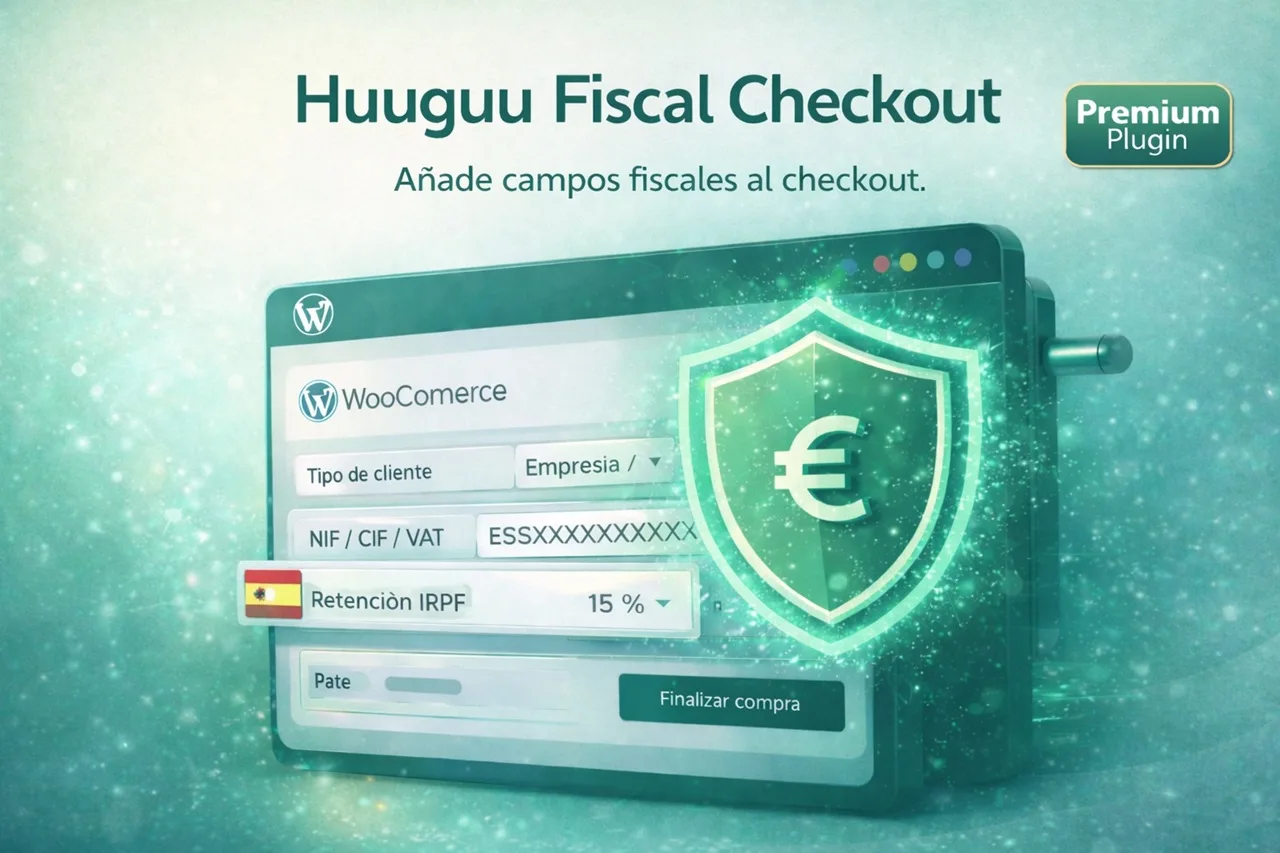 Huuguu Fiscal Checkout es un plugin 100% premium. La licencia activa habilita la lógica fiscal avanzada y el cálculo automático de IRPF cuando el entorno es compatible.